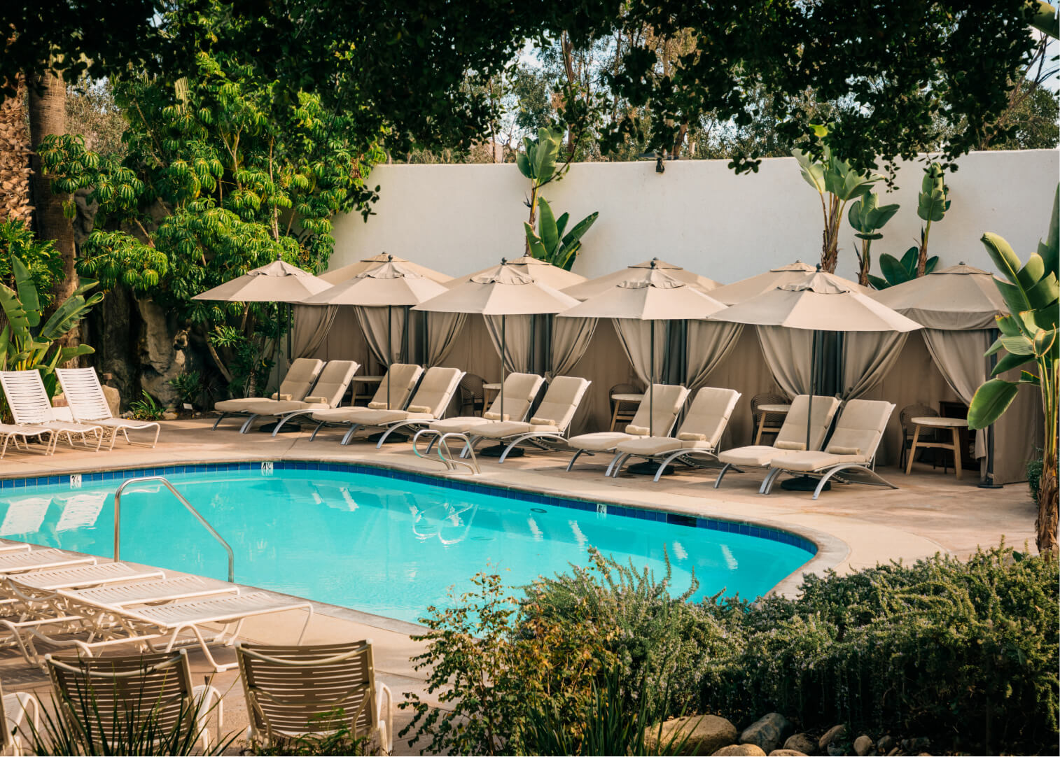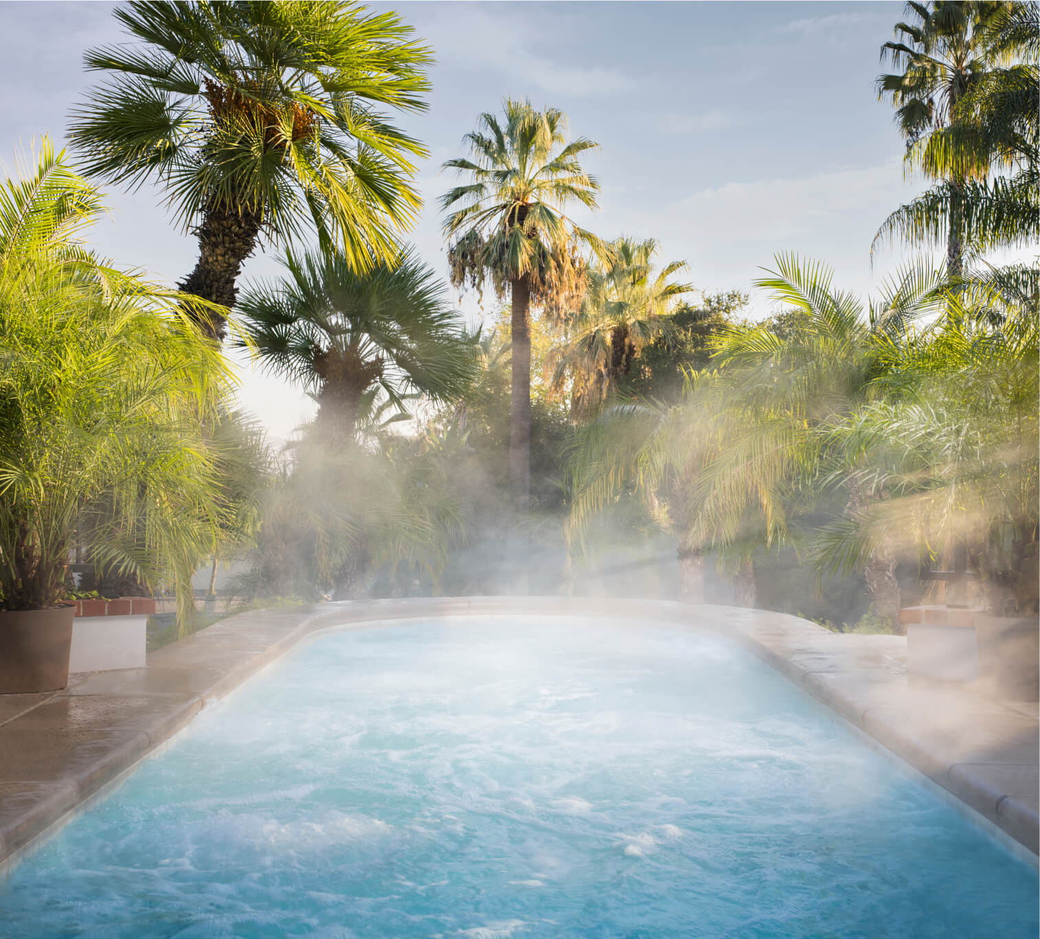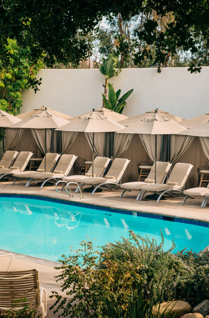 Enjoy long views of the Santa Ana mountains from this beautiful hot pool, where you can watch the sun set over the lush grounds of Glen Ivy Hot Springs.