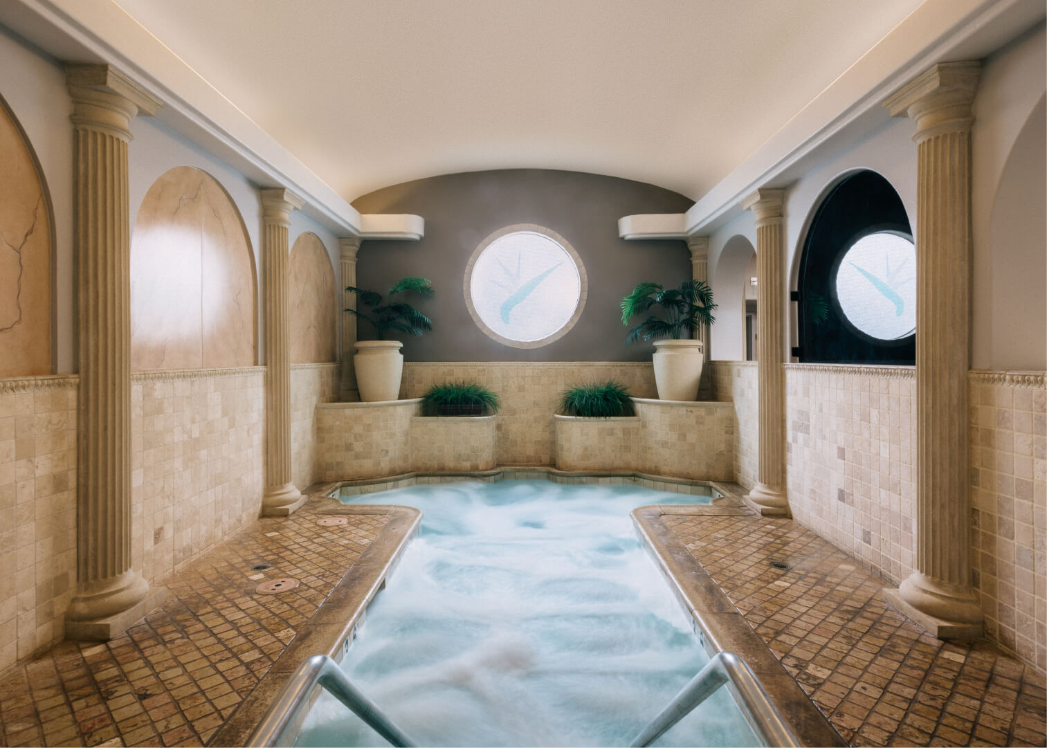 Found in our Bath House changing rooms, these indoor pools of classical proportions are bordered by stone colonnades, classical arches and mosaics, all designed to bring out the god or goddess in you.